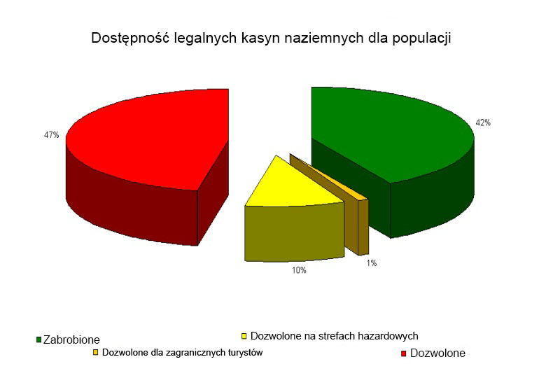 Pozostało 151 krajów (67% badanych), w których dozwolone są zakłady hazardowe na ziemi. Dlatego tylko 47% światowej populacji może swobodnie odwiedzać kasyna w swoich krajach.