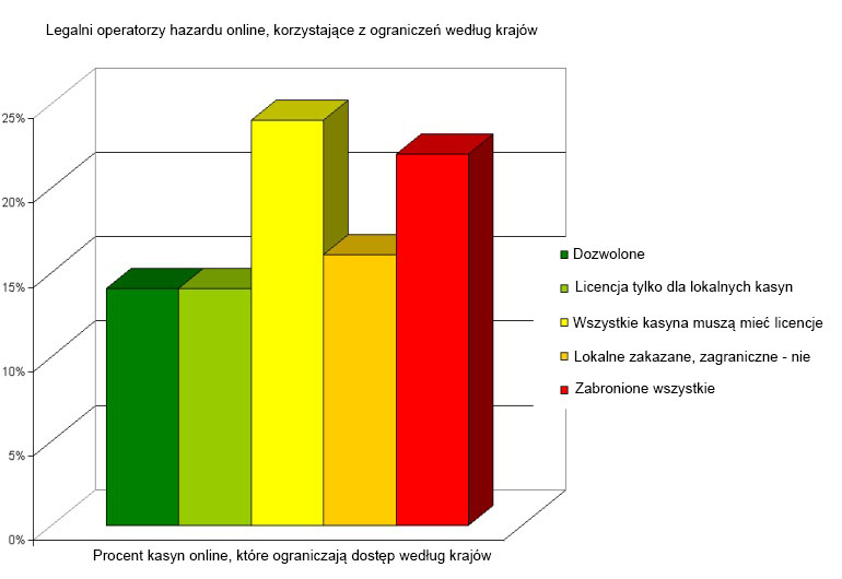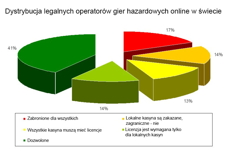 Dystrybucja legalnych operatorów gier hazardowych online w krajach świata (porównanie)