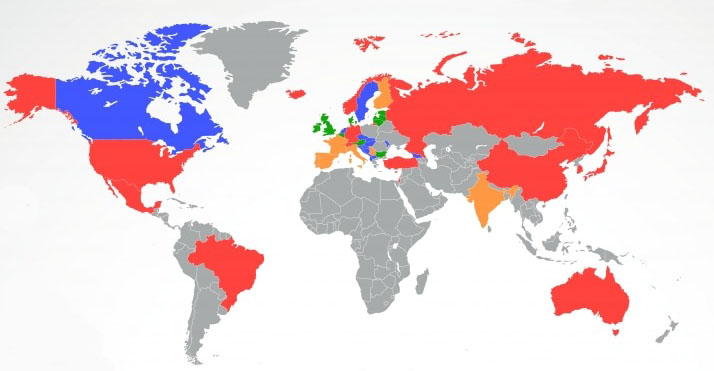 Korzystając z przedstawionych danych, można zobaczyć, w jaki sposób kraje zezwalające działalność kasyn naziemnych, zabraniają działania kasyn online i odwrotnie. Na świecie istnieje 168 krajów, w których lokalni mieszkańcy mogą grać w punktach naziemnych w całym kraju lub w pewnych jego częściach. W jaki sposób te kraje odnoszą się do gier hazardowych online?